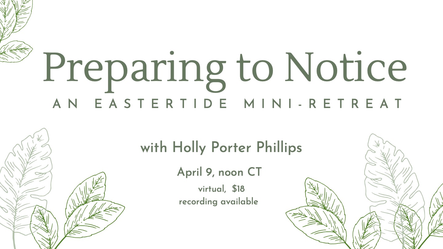 Preparing to Notice: an Eastertide Mini-Retreat, is a time set aside to notice (and prepare to notice) resurrection all around us. During this mini-retreat, Holly Porter Phillips will guide you […]